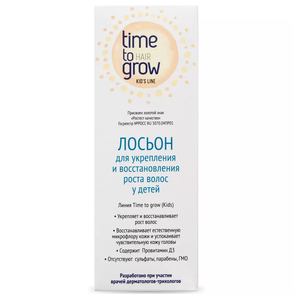 Препарат разработан, с учетом особенностей физиологии детской кожи. Не содержит сульфаты, парабены, ГМО. Не требует смывания. Эффективность повышается при сочетании с другими продуктами профессиональной линии Time to grow
